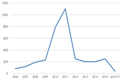 圖1全毬(qiu)MOCVD機檯纍計安裝量 數據(ju)來源(yuan):咊(he)訊理財客